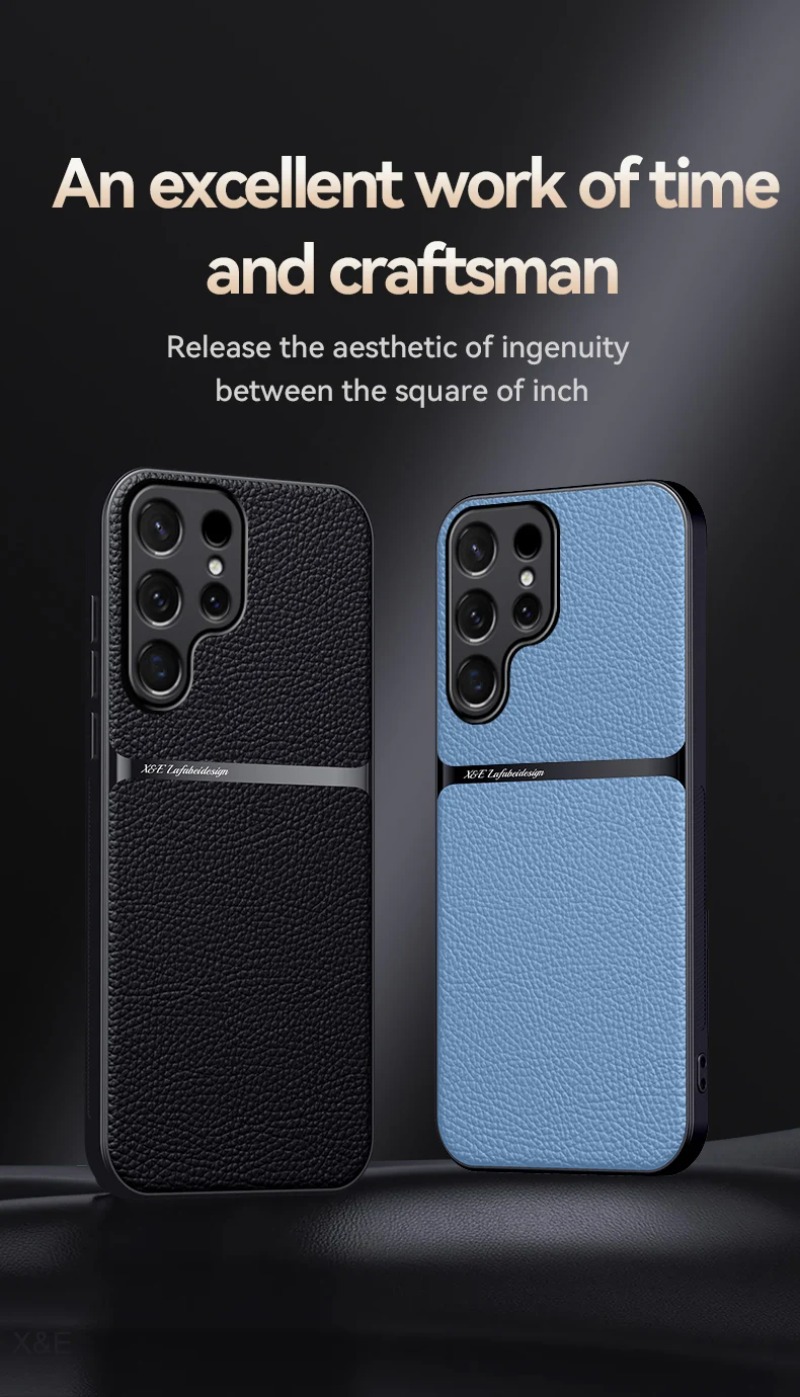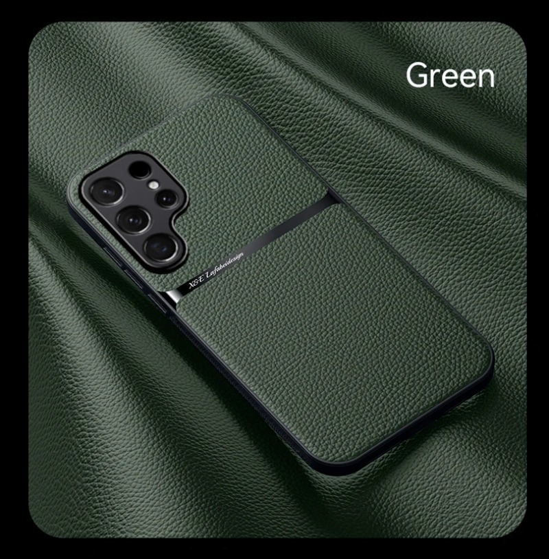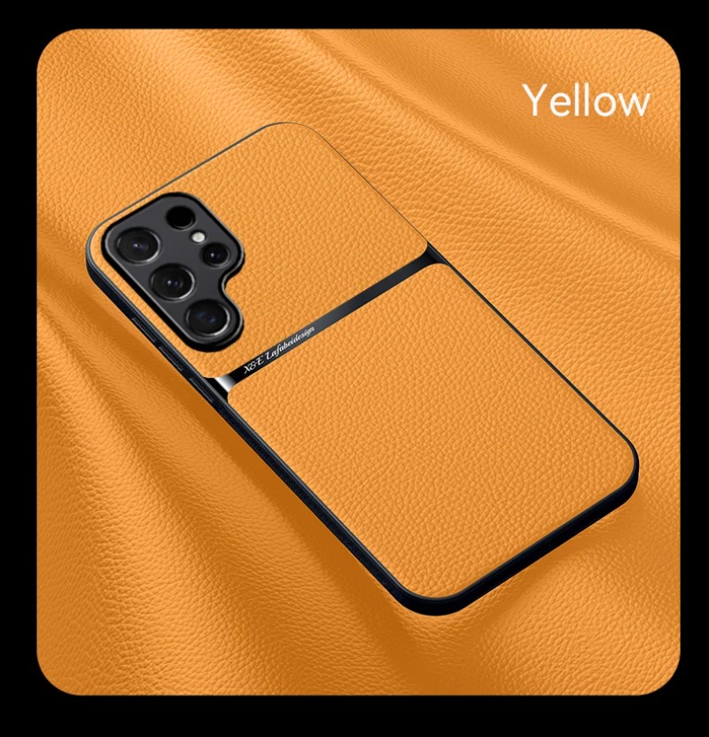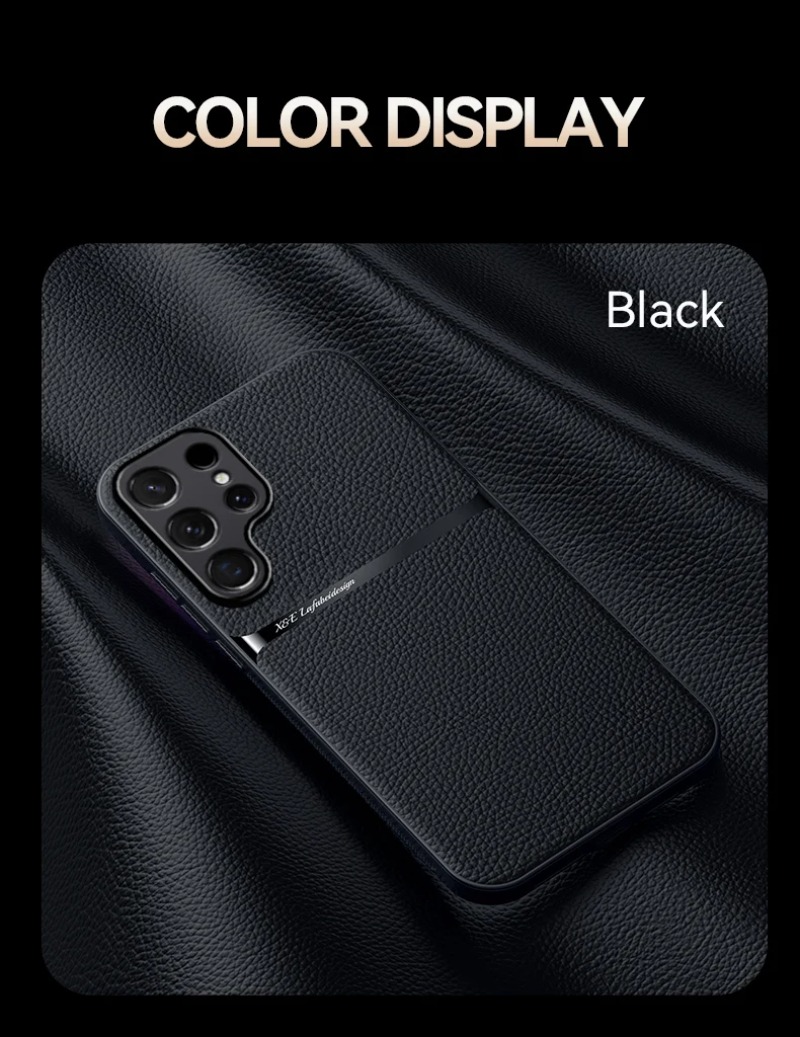For Magnetic Car Holder Luxury Leather Phone Case For Samsung
