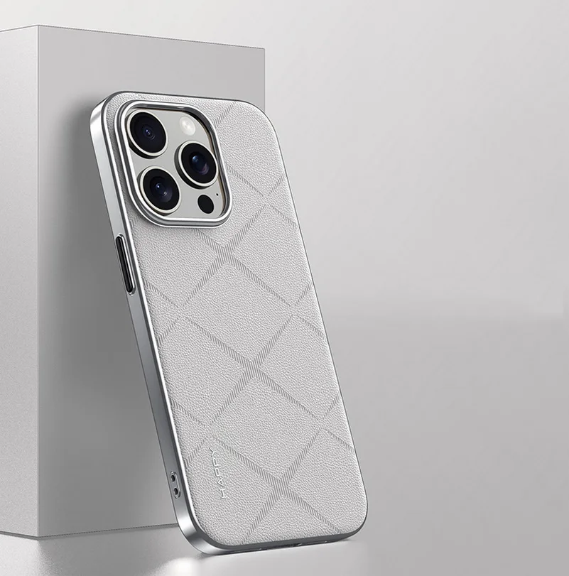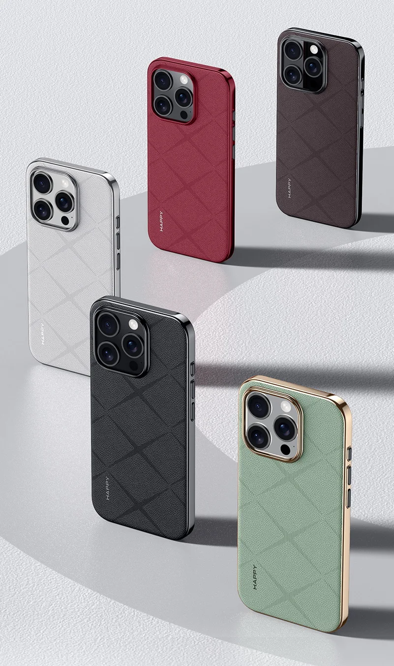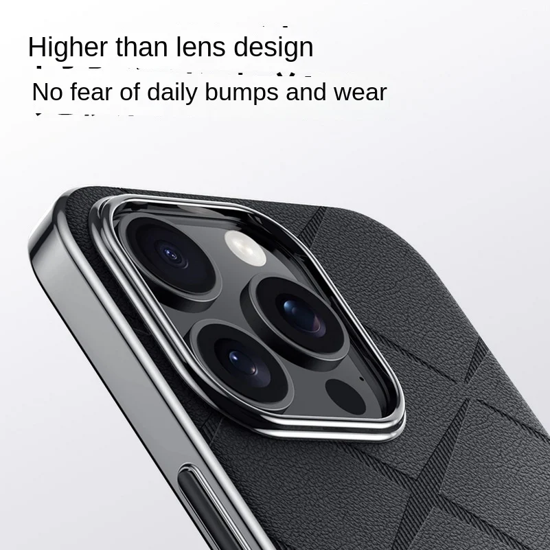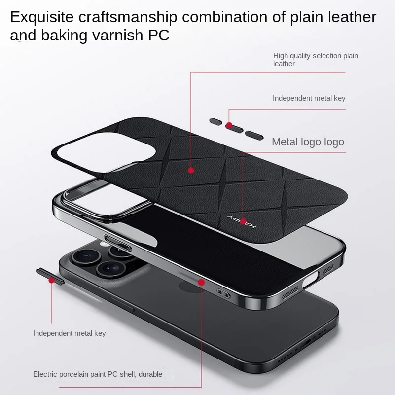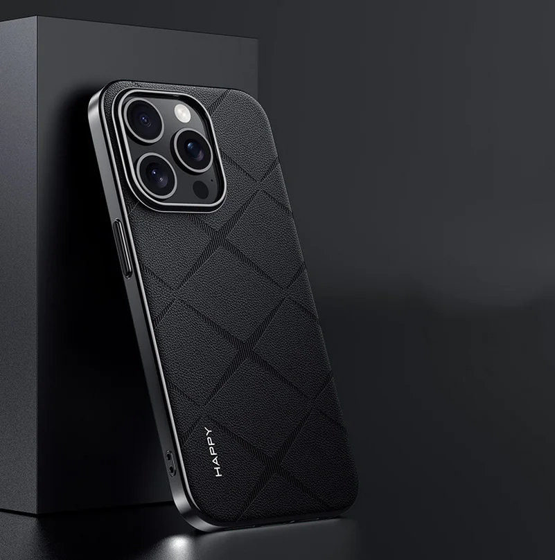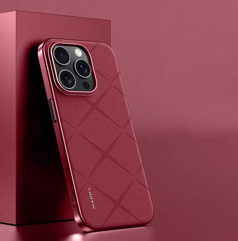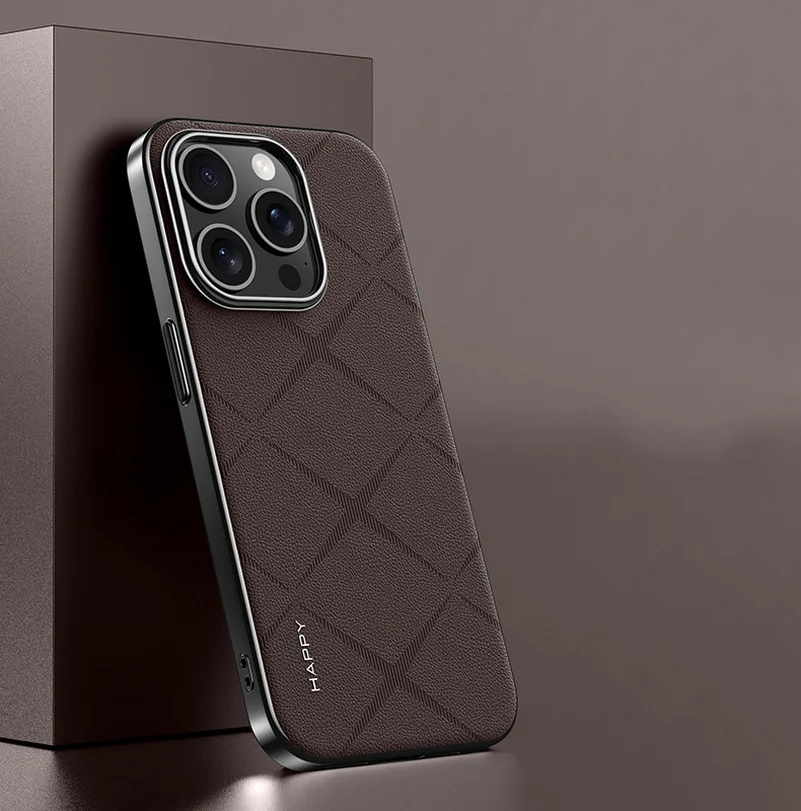 Luxury Plain Leather + Camera Lens Protection Case For iPhone