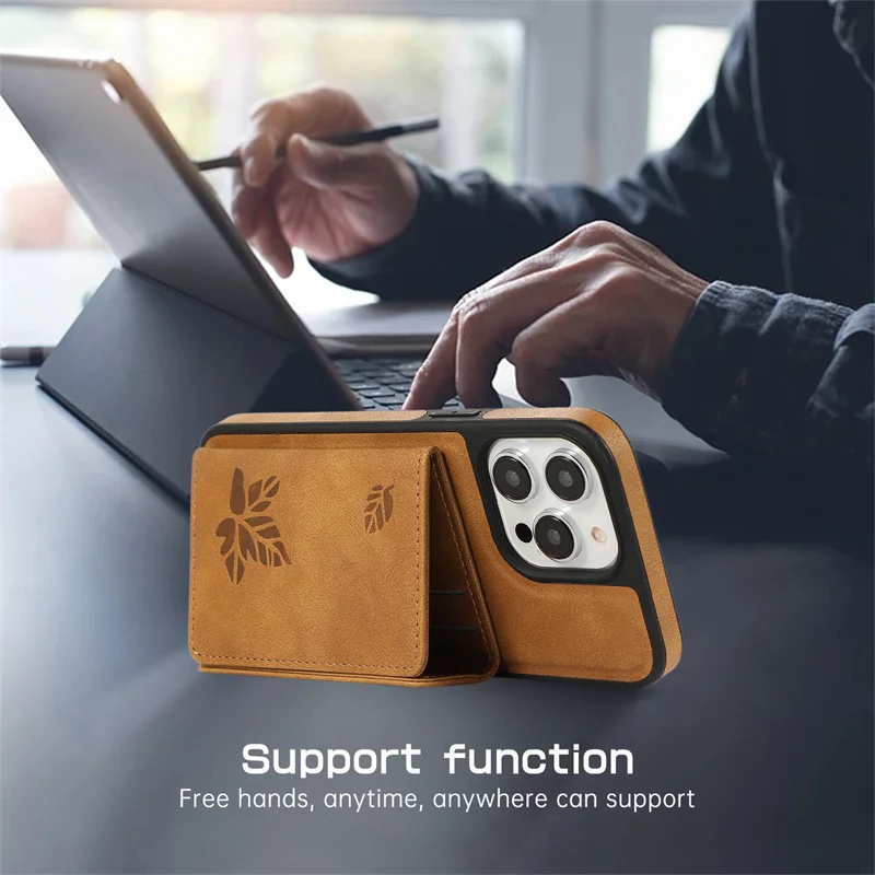 Luxury Maple Leaf Leather Wallet Card Case For iPhone