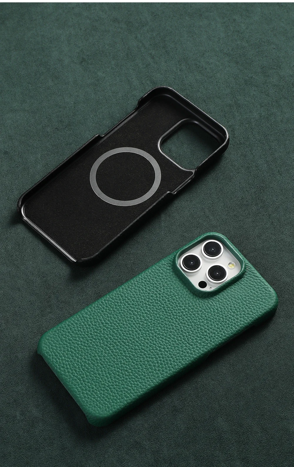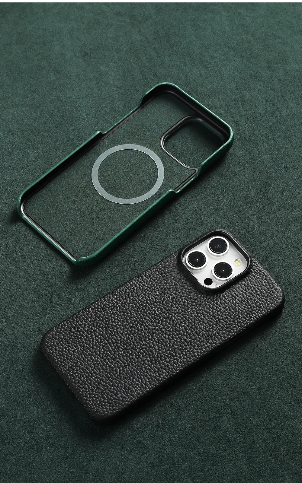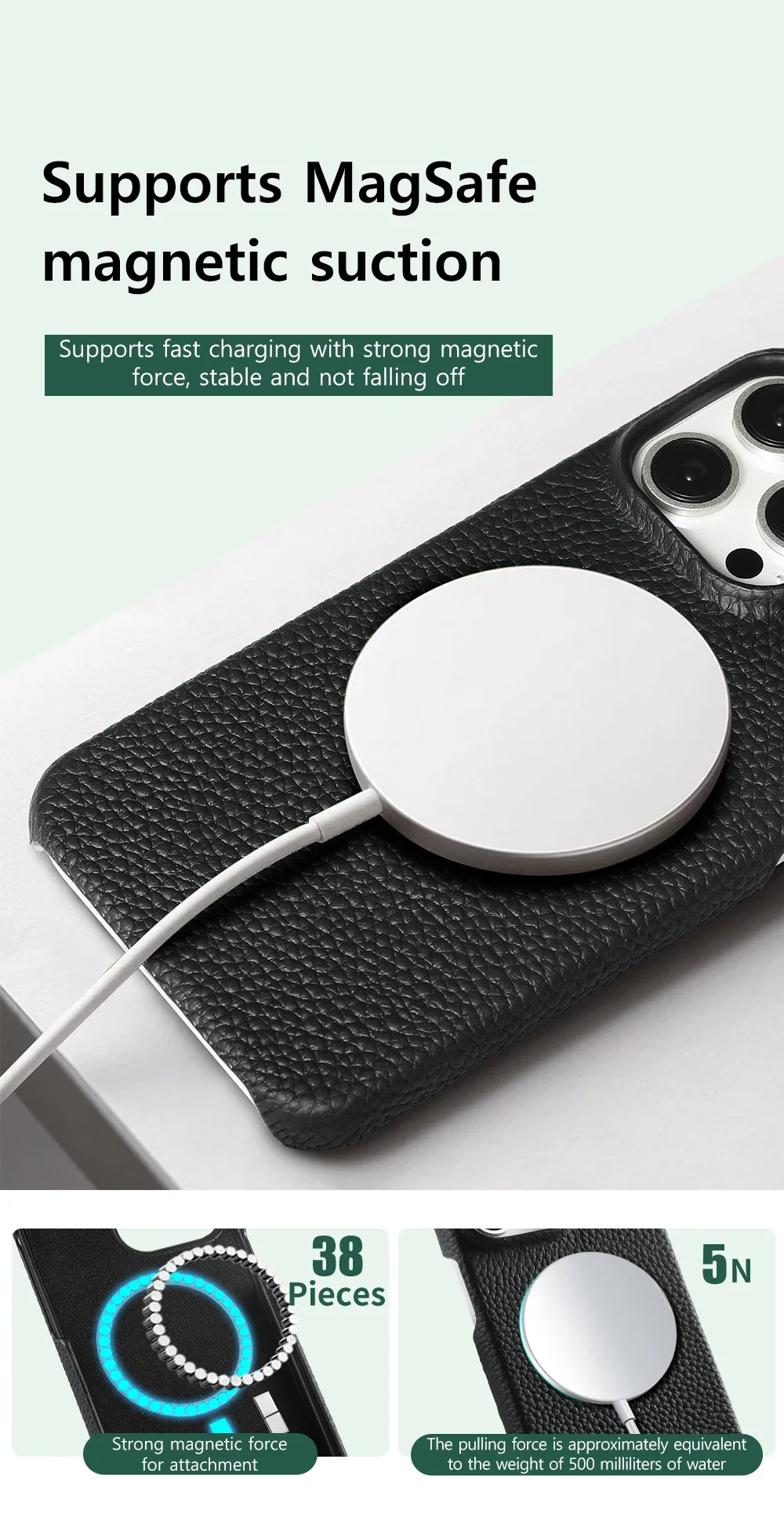 Cowhide Lychee Leather Magnetic Case for iPhone